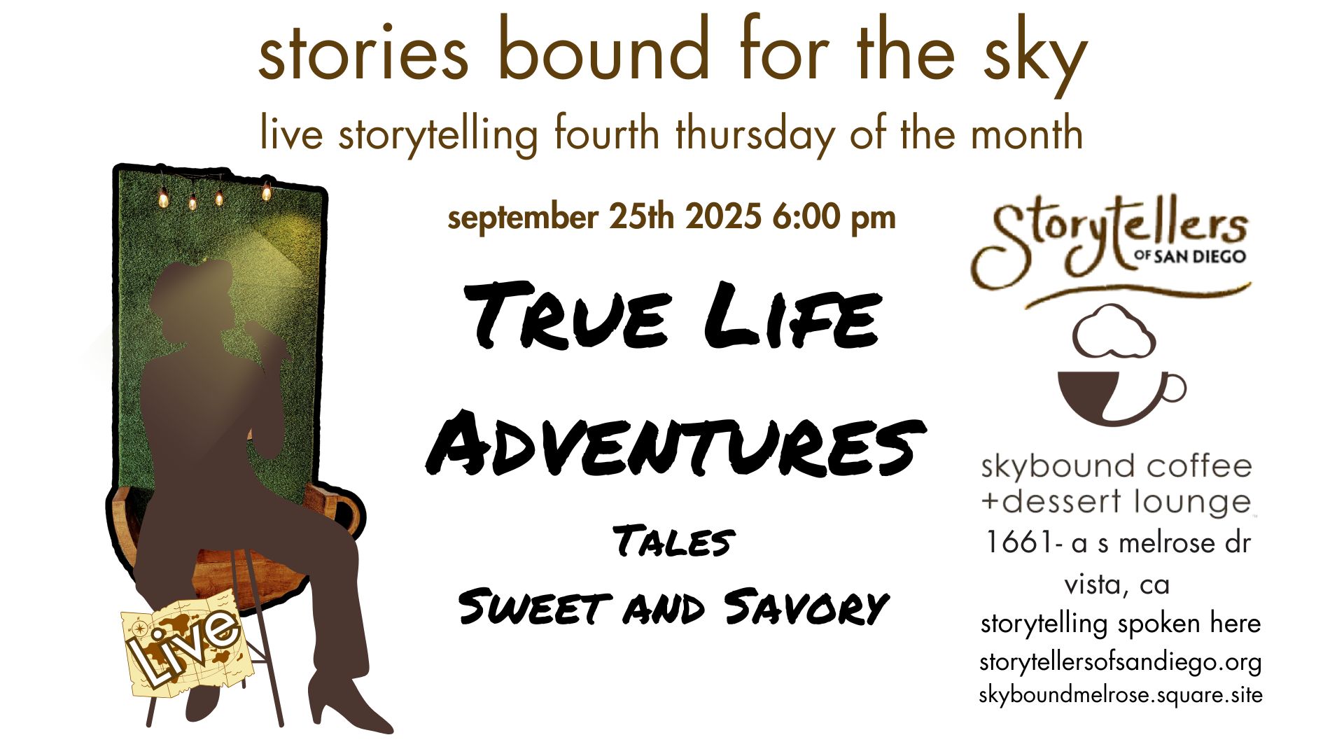 Back to the Skybound Lounge! Sweet and savory, with other talented storytellers. Nice place to sit and hang and eat and listen.